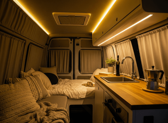 - Tinting and Curtains: Dark window tinting or full-coverage curtains prevent prying eyes from seeing what is inside your van.